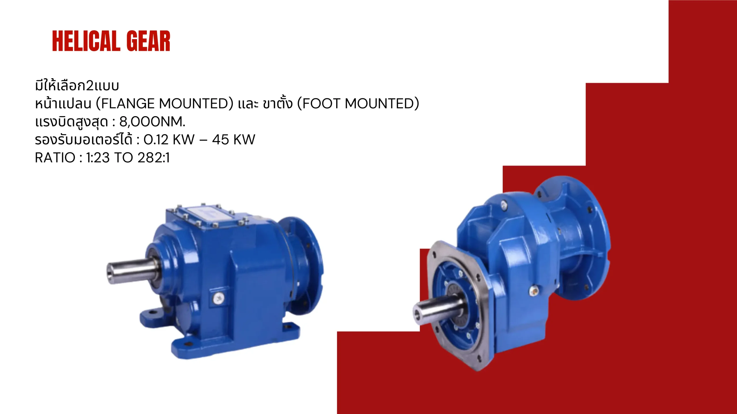 HELICAL มีให้เลือก2แบบ หน้าแปลน (FLANGE MOUNTED) และ ขาตั้ง (FOOT MOUNTED)