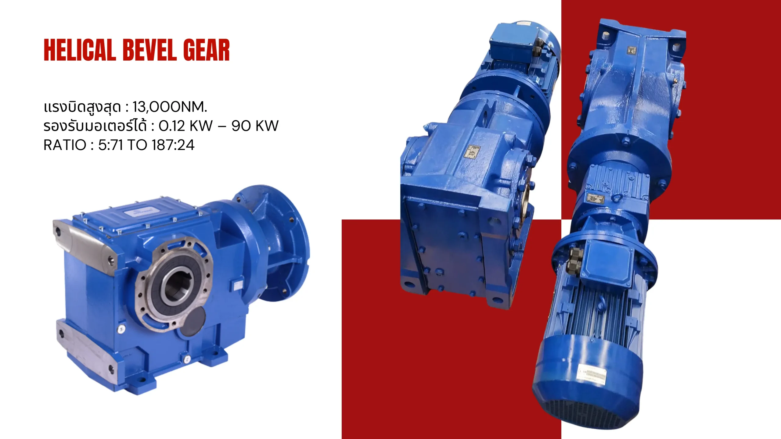 HELICAL BEVEL แรงบิดสูงสุด : 13,000NM., รองรับมอเตอร์ : 0.12 kW. – 90 kW., RATIO : 5:71 TO 187:24