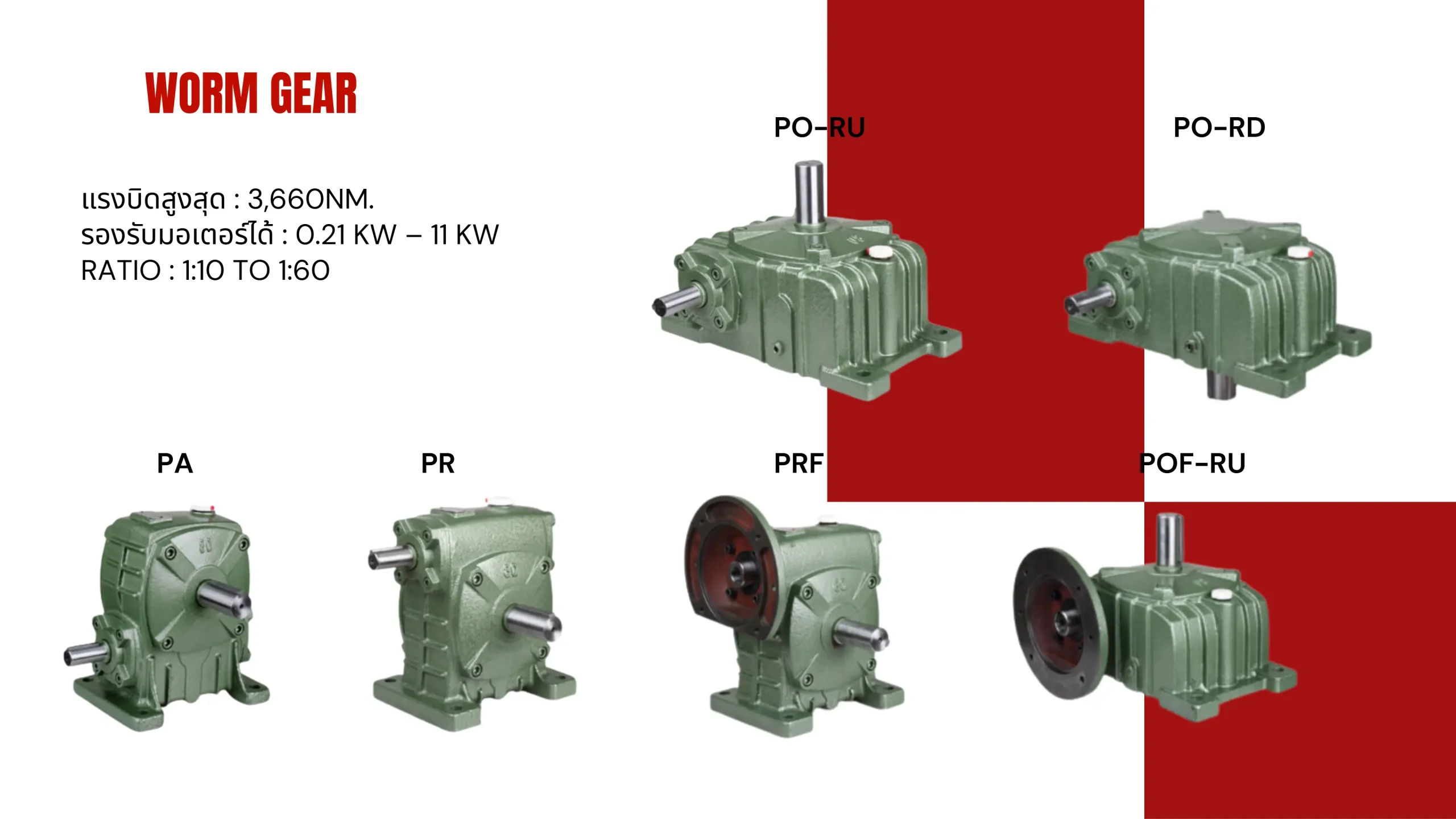แรงบิดสูงสุด : 8,000NM., รองรับมอเตอร์ : 0.12 kW. – 45 kW., RATIO : 1:23 TO 282:1